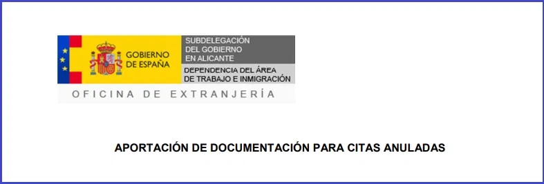 APORTACIÓN DE DOCUMENTACIÓN PARA CITAS ANULADAS