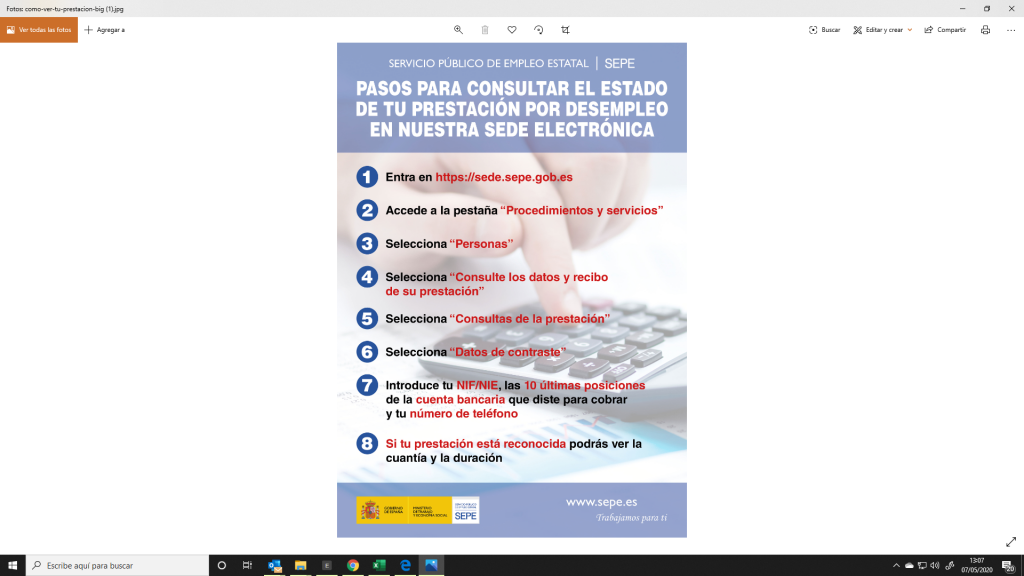 A través de este servicio puedes consultar el estado de tu prestación por desempleo relativo a tus datos personales, solicitudes.